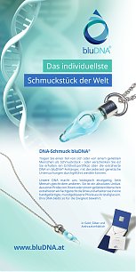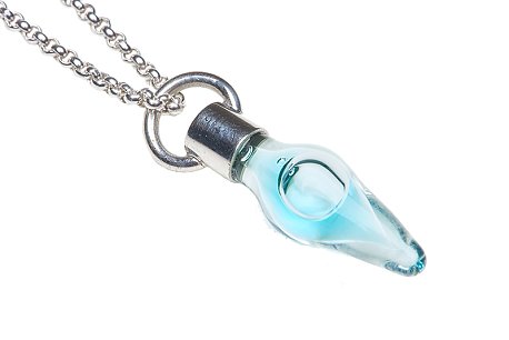 Halskette silber mit einer Glasphiole als Anhänger, die die persönliche DNA aus Ihrer Probe enthält.