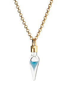 Kettenanhänger, eine mundgeblasene 3,5 cm große Phiole aus Kristallglas mit Verschlußkappe und Halte-Ring an einer 42 cm langen Kette mit Karabinerschloss. Sterling Silber mit 24 karätiger Gold Plattinierung (mit 24 -karätigem Gold plattiniert) in bester Goldschmiedetradition von Hand gefertigt. Das Schmuckset inkl. Echtheitszertifikat erhalten Sie in einem doppelflügigen Geschenks-Etui. |